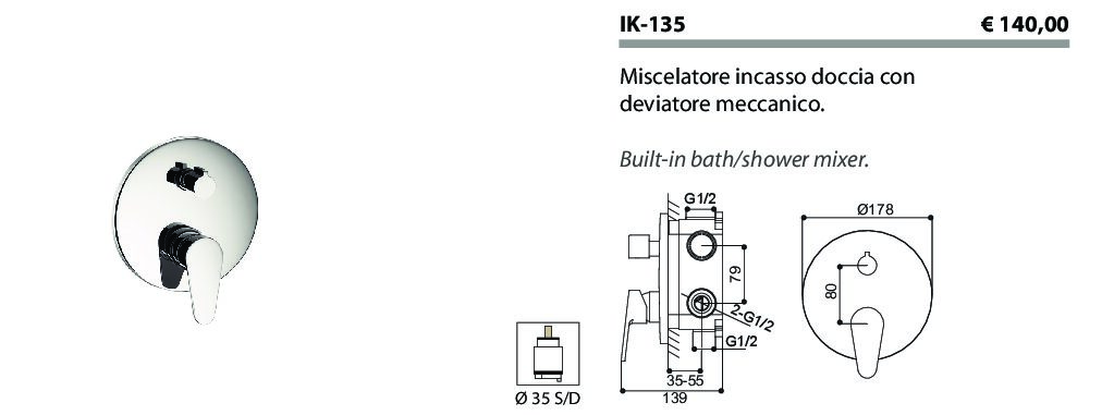 Miscelatore incasso doccia con deviatore automatico Piastra Lusso