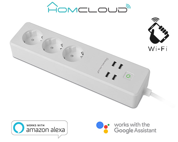 Multipresa Wi-Fi intelligente Schuko(tedesca) 16A totali, 3 x schuko e 4 x USB, comandabile da Smartphone e Vocalmente,