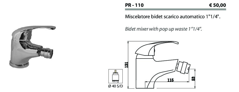 Miscelatore bidet scarico automatico 1″1/4″