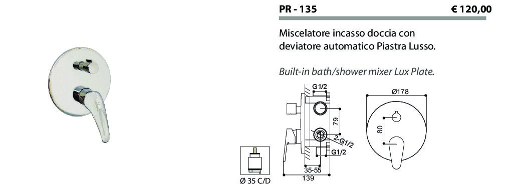 Miscelatore incasso doccia con deviatore Piastra Lusso