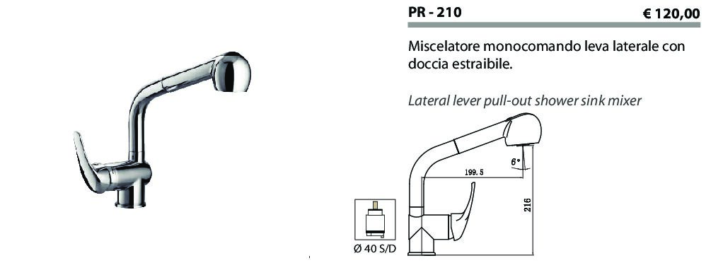 Miscelatore monocomando leva laterale con doccia estraibile