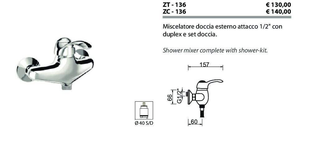 Miscelatore doccia esterno attacco 1/2″ con duplex e set doccia